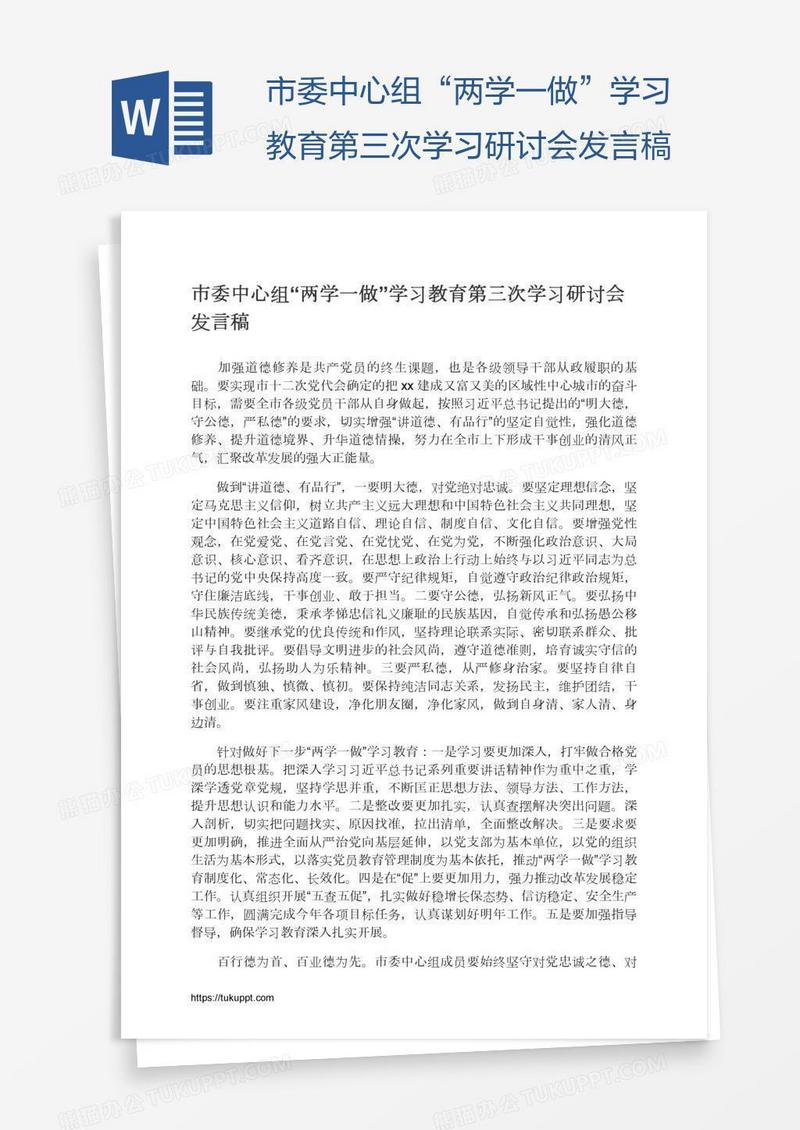 本作品为市委中心组“两学一做”学习教育第三次学习研讨会发言稿, 编号:v9lwn0mgma, 格式为 docx, 大小1 MB, 本作品下载后,先解压,解压之后用推荐软件 Word(2010) 打开, 然后进行编辑功能。