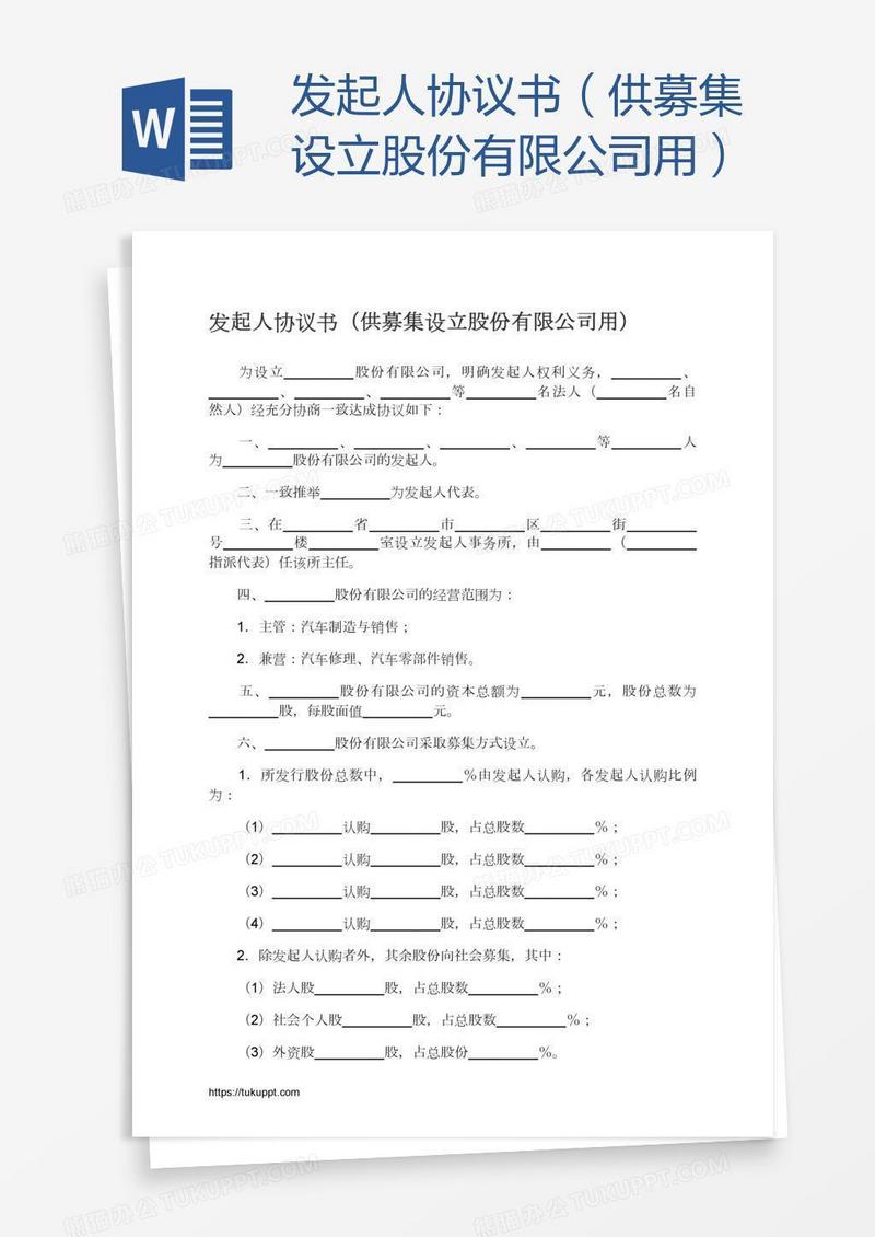 本作品为发起人协议书(供募集设立股份有限公司用), 编号:v9lwn2m75a, 格式为 docx, 大小1 MB, 本作品下载后,先解压,解压之后用推荐软件 Word(2010) 打开, 然后进行编辑功能。