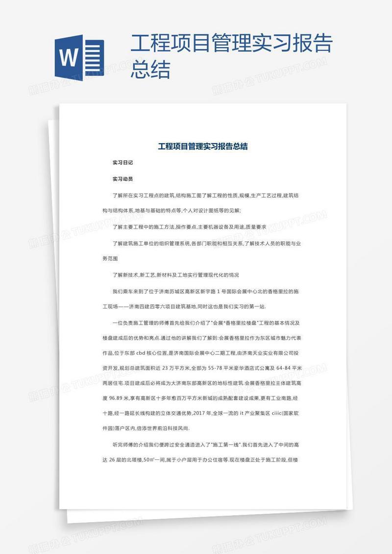 本作品为工程项目管理实习报告总结, 编号:v9lwn4mkma, 格式为 docx, 大小1 MB, 本作品下载后,先解压,解压之后用推荐软件 Word(2010) 打开, 然后进行编辑功能。