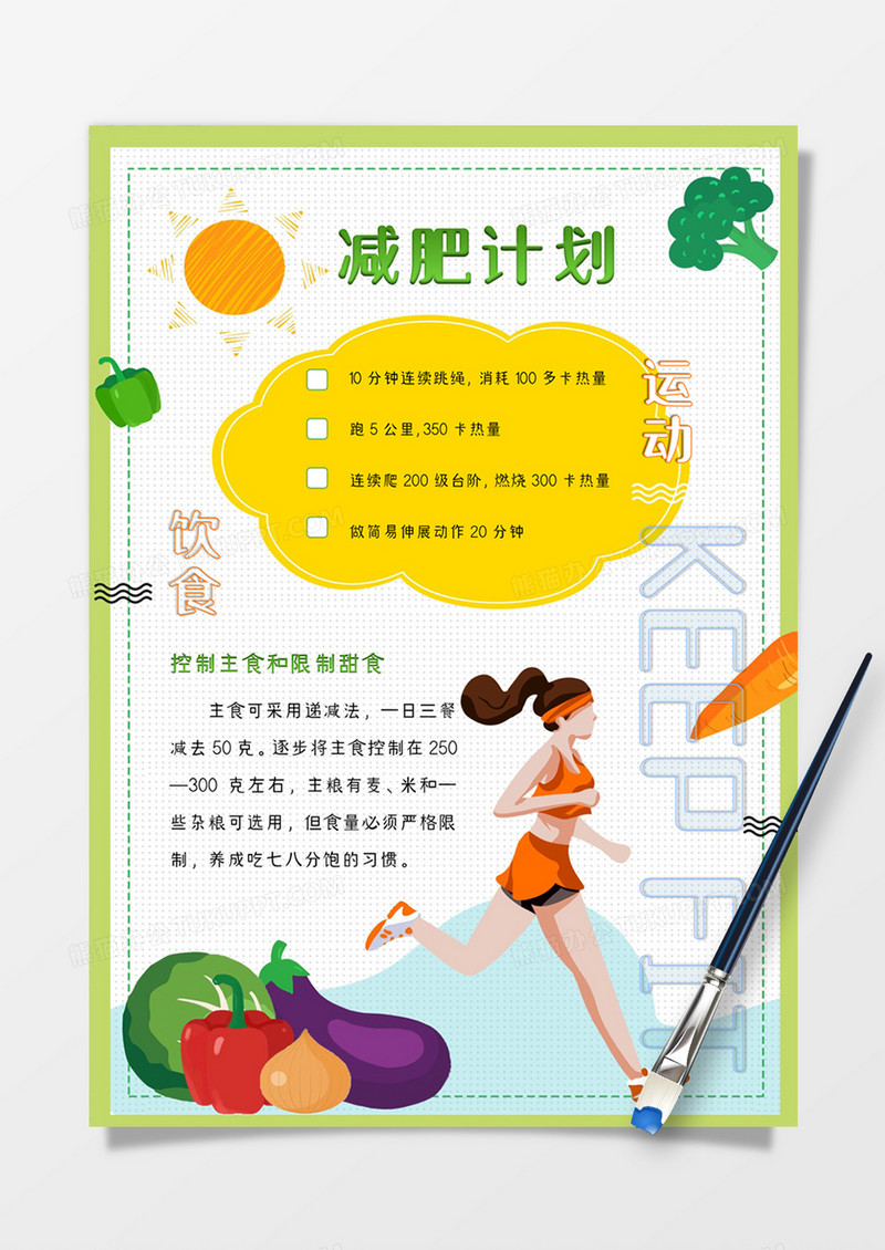 本作品为清新明亮健康减肥计划手账, 编号:v9lwn54m5a, 格式为 docx, 大小4 MB, 本作品下载后,先解压,解压之后用推荐软件 Word(2010) 打开, 然后进行编辑功能。