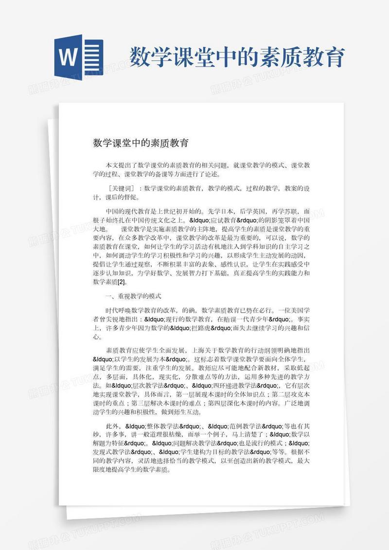 本作品为数学课堂中的素质教育, 编号:v9lwn758ja, 格式为 docx, 大小1 MB, 本作品下载后,先解压,解压之后用推荐软件 Word(2010) 打开, 然后进行编辑功能。