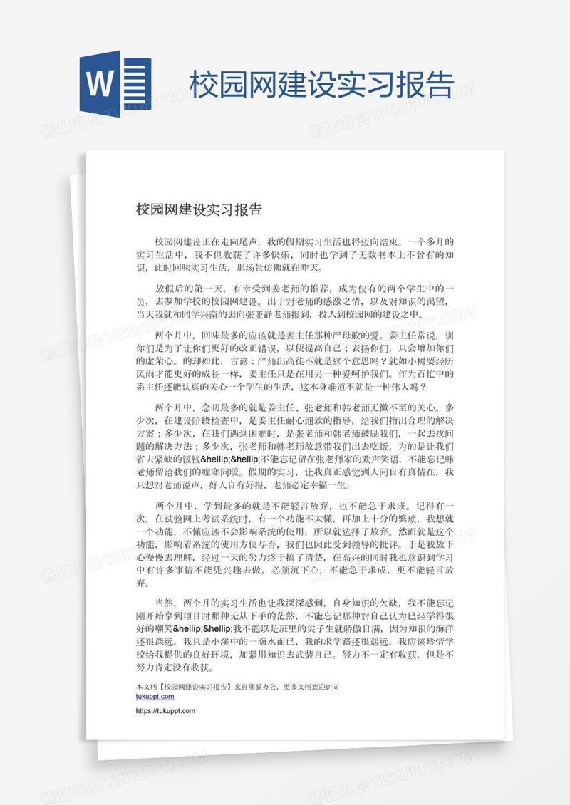 本作品为校园网建设实习报告, 编号:v9lwn8p35a, 格式为 docx, 大小1 MB, 本作品下载后,先解压,解压之后用推荐软件 Word(2010) 打开, 然后进行编辑功能。
