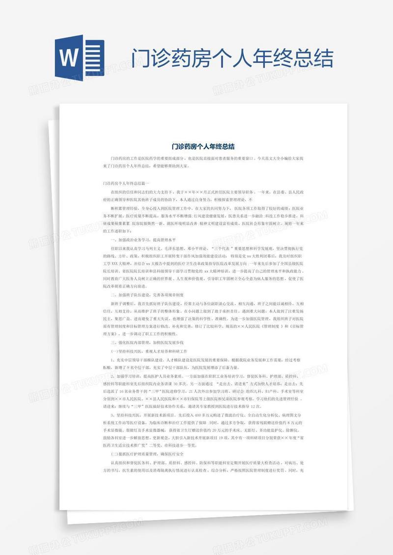 本作品为门诊药房个人年终总结, 编号:v9lwndlq5a, 格式为 doc, 大小1 MB, 本作品下载后,先解压,解压之后用推荐软件 Word(2010) 打开, 然后进行编辑功能。