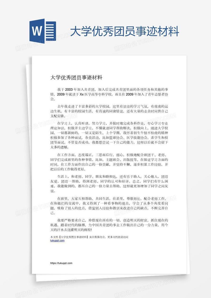 本作品为大学优秀团员事迹材料, 编号:v9lwnqjv5a, 格式为 docx, 大小1 MB, 本作品下载后,先解压,解压之后用推荐软件 Word(2010) 打开, 然后进行编辑功能。