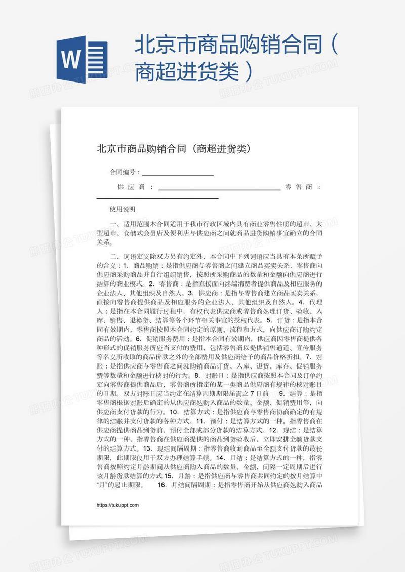 本作品为北京市商品购销合同(商超进货类), 编号:v9lwnrnrja, 格式为 docx, 大小1 MB, 本作品下载后,先解压,解压之后用推荐软件 Word(2010) 打开, 然后进行编辑功能。