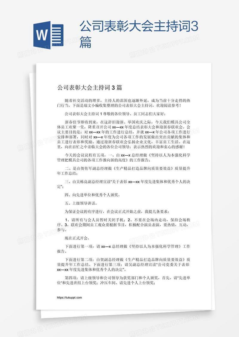 本作品为公司表彰大会主持词3篇, 编号:v9lwnwbq3a, 格式为 docx, 大小1 MB, 本作品下载后,先解压,解压之后用推荐软件 Word(2010) 打开, 然后进行编辑功能。