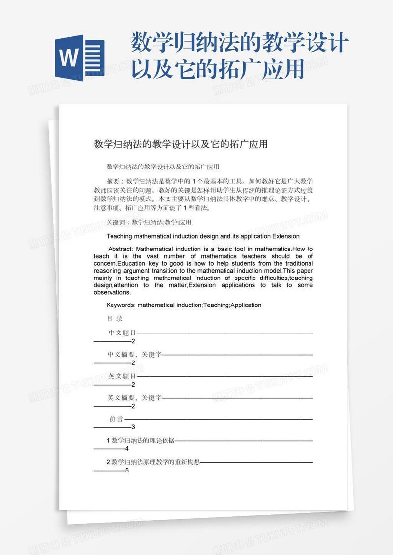 本作品为数学归纳法的教学设计以及它的拓广应用, 编号:w94go2j209, 格式为 docx, 大小1 MB, 本作品下载后,先解压,解压之后用推荐软件 Word(2010) 打开, 然后进行编辑功能。
