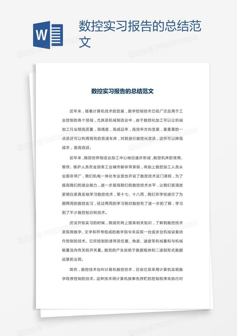 本作品为数控实习报告的总结范文, 编号:w94go43k49, 格式为 docx, 大小1 MB, 本作品下载后,先解压,解压之后用推荐软件 Word(2010) 打开, 然后进行编辑功能。