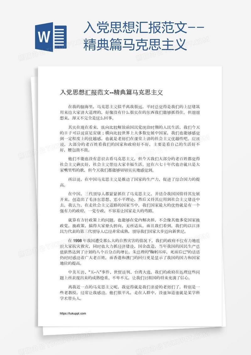 本作品为入党思想汇报范文--精典篇马克思主义, 编号:w94gob7mn9, 格式为 docx, 大小1 MB, 本作品下载后,先解压,解压之后用推荐软件 Word(2010) 打开, 然后进行编辑功能。