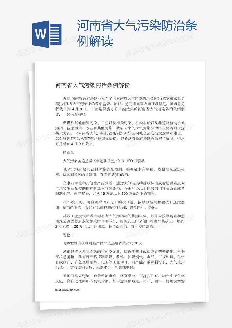 本作品为河南省大气污染防治条例解读, 编号:w94gobbol9, 格式为 docx, 大小1 MB, 本作品下载后,先解压,解压之后用推荐软件 Word(2010) 打开, 然后进行编辑功能。