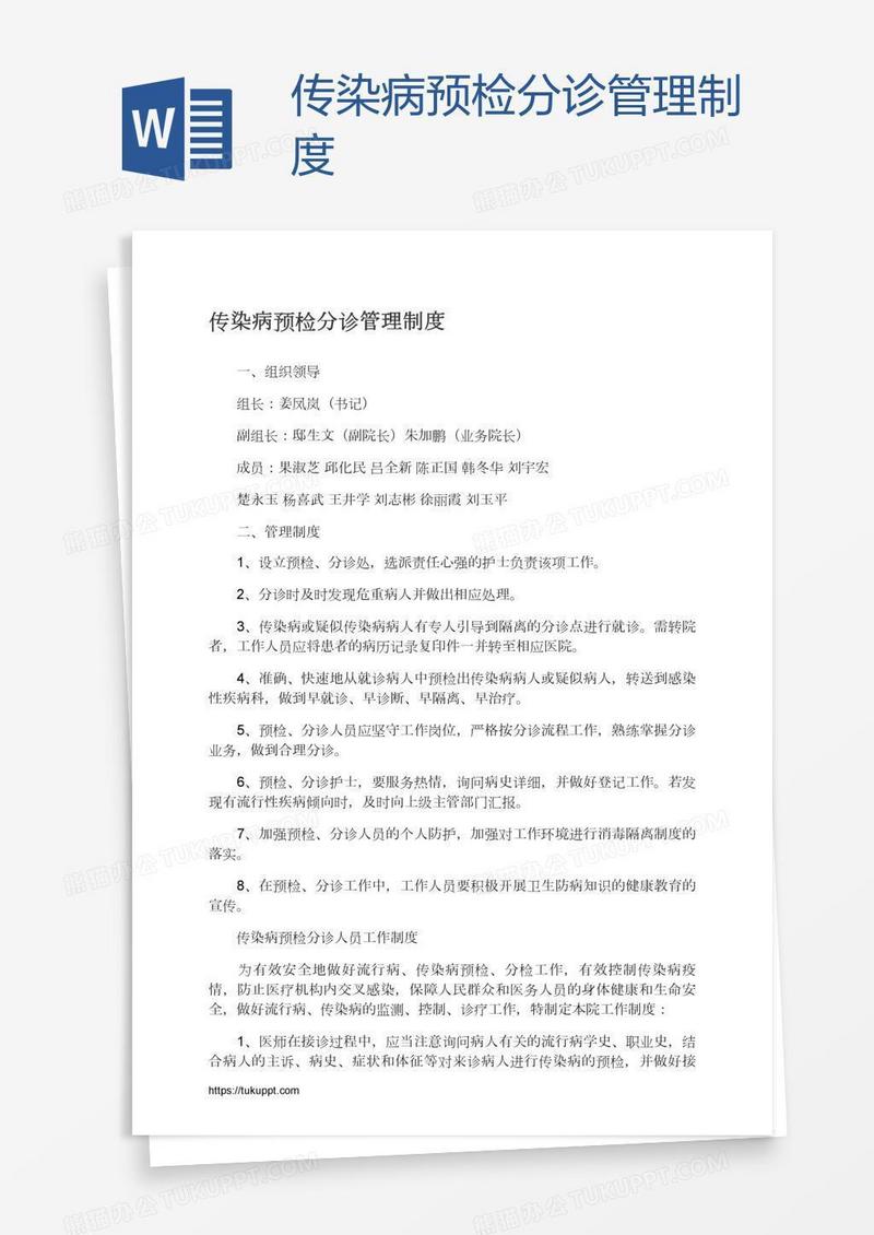 本作品为传染病预检分诊管理制度, 编号:w94goberk9, 格式为 docx, 大小1 MB, 本作品下载后,先解压,解压之后用推荐软件 Word(2010) 打开, 然后进行编辑功能。