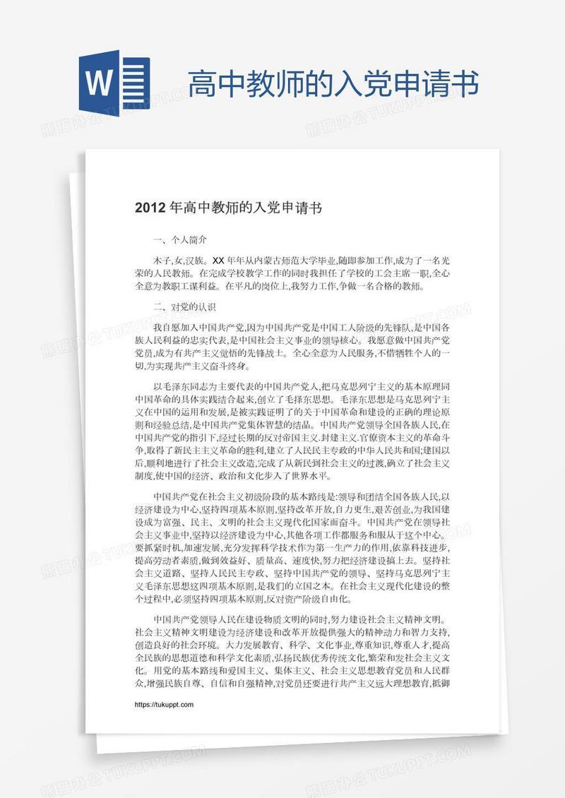 本作品为高中教师的入党申请书, 编号:w94gobqqj9, 格式为 docx, 大小1 MB, 本作品下载后,先解压,解压之后用推荐软件 Word(2010) 打开, 然后进行编辑功能。
