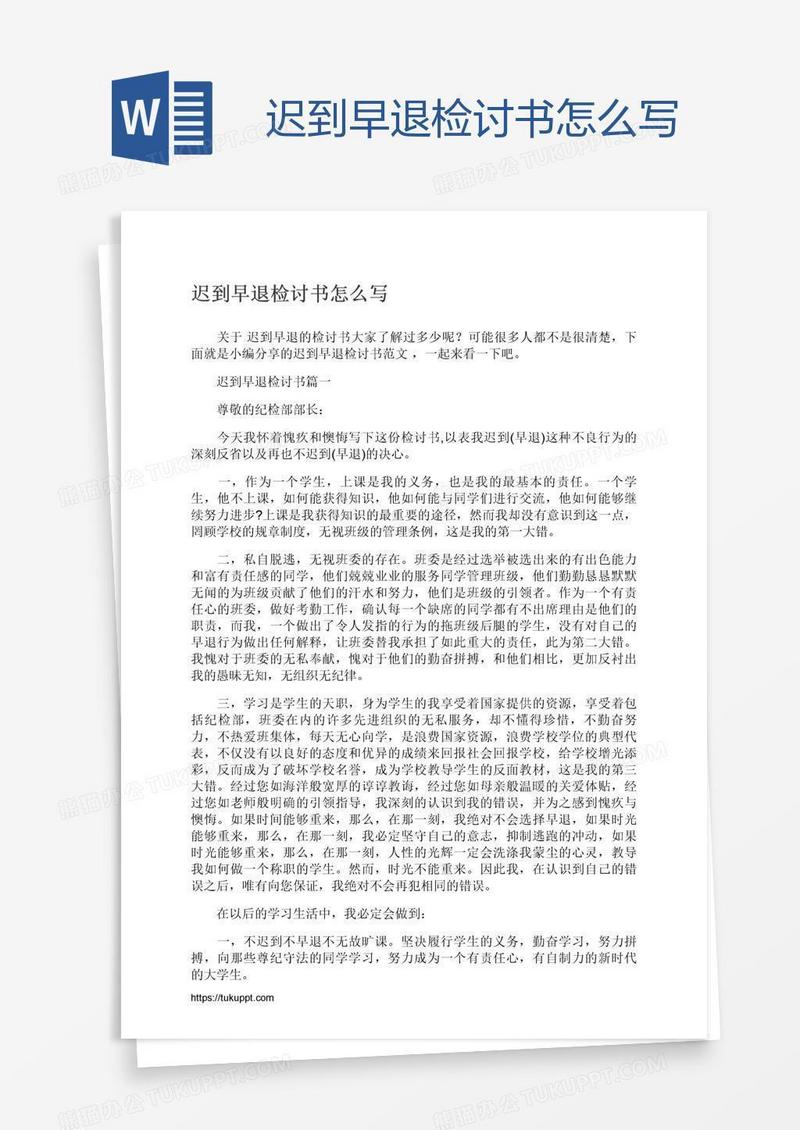 本作品为迟到早退检讨书怎么写, 编号:w94gol8rn9, 格式为 docx, 大小1 MB, 本作品下载后,先解压,解压之后用推荐软件 Word(2010) 打开, 然后进行编辑功能。