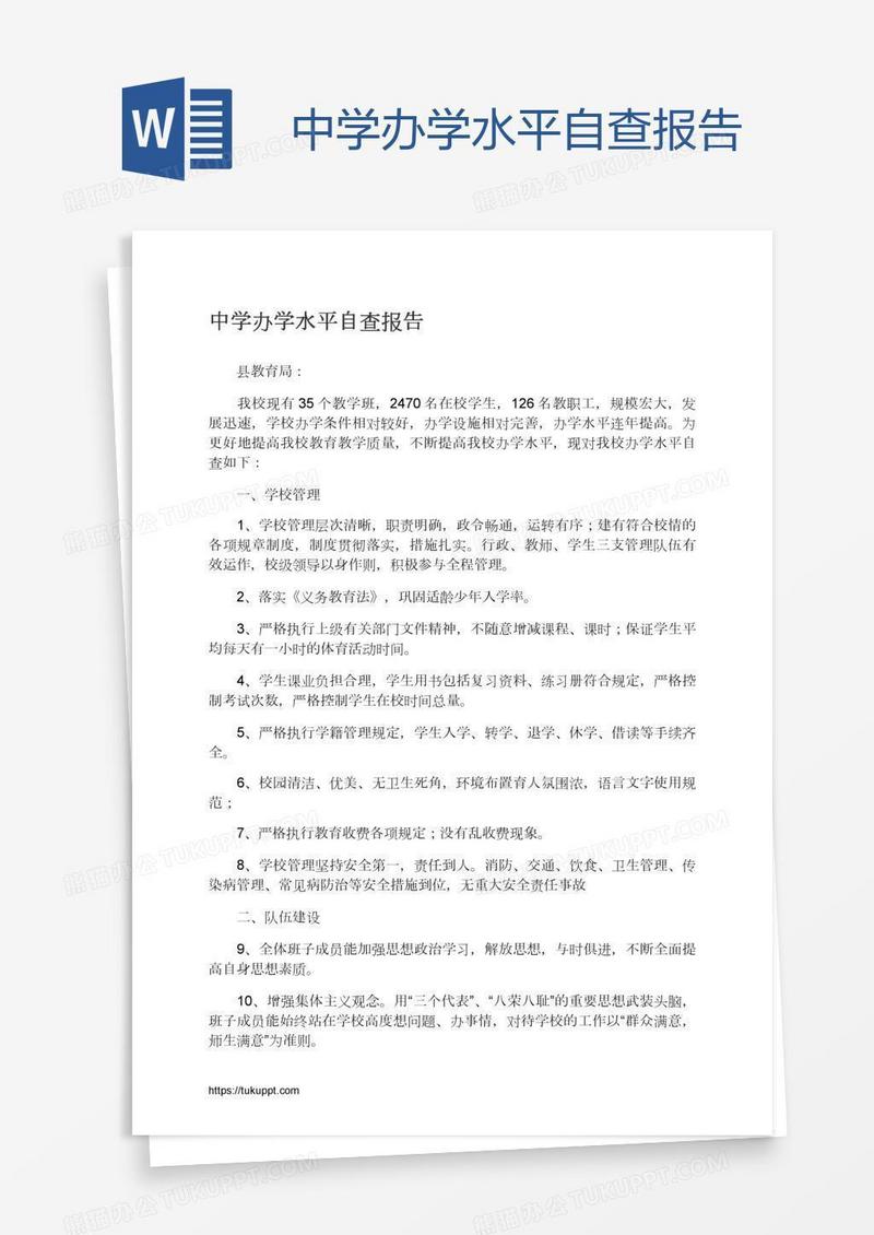 本作品为中学办学水平自查报告, 编号:w94gor7kn9, 格式为 docx, 大小1 MB, 本作品下载后,先解压,解压之后用推荐软件 Word(2010) 打开, 然后进行编辑功能。