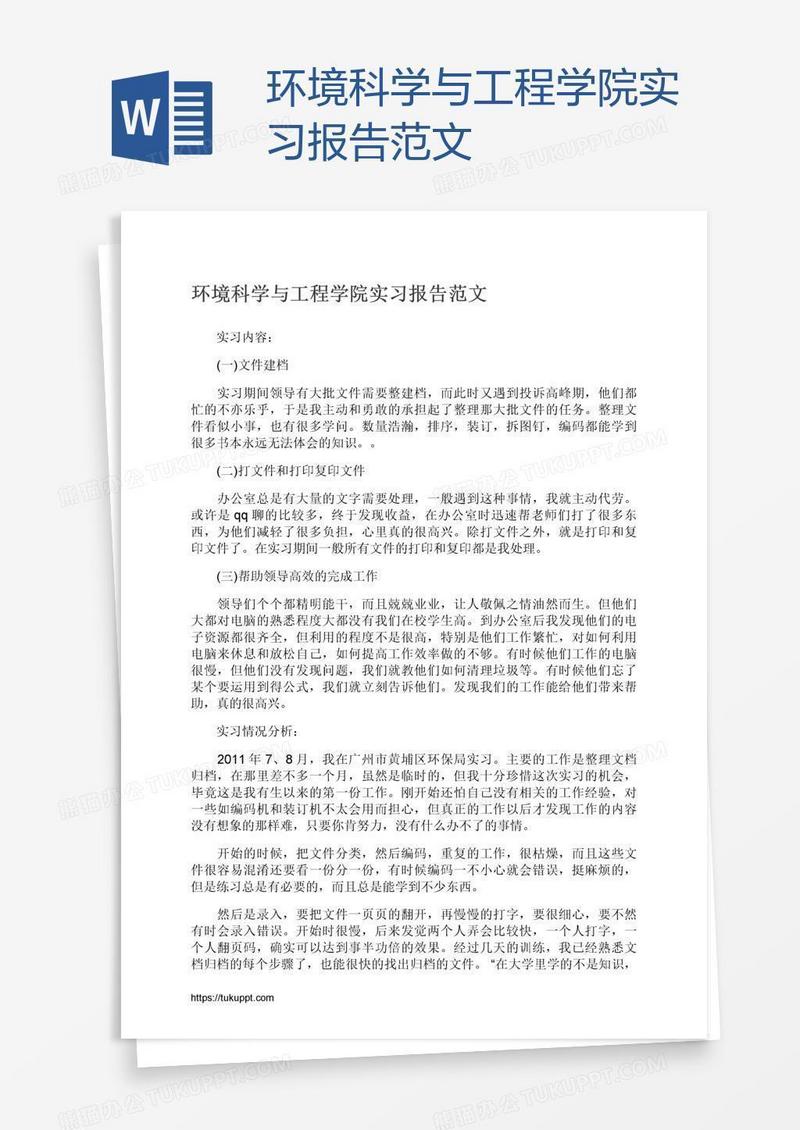 本作品为环境科学与工程学院实习报告范文, 编号:w94gp62b09, 格式为 docx, 大小1 MB, 本作品下载后,先解压,解压之后用推荐软件 Word(2010) 打开, 然后进行编辑功能。