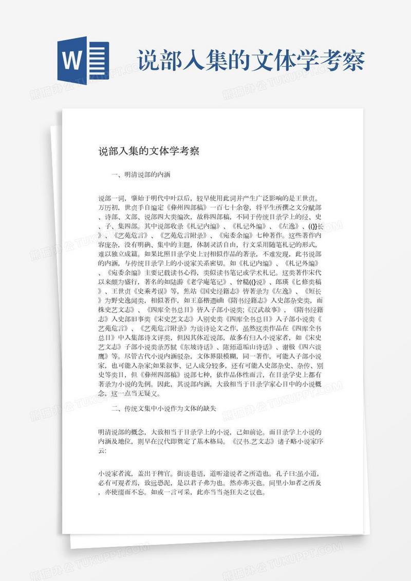 本作品为说部入集的文体学考察, 编号:w94gqomb09, 格式为 docx, 大小1 MB, 本作品下载后,先解压,解压之后用推荐软件 Word(2010) 打开, 然后进行编辑功能。