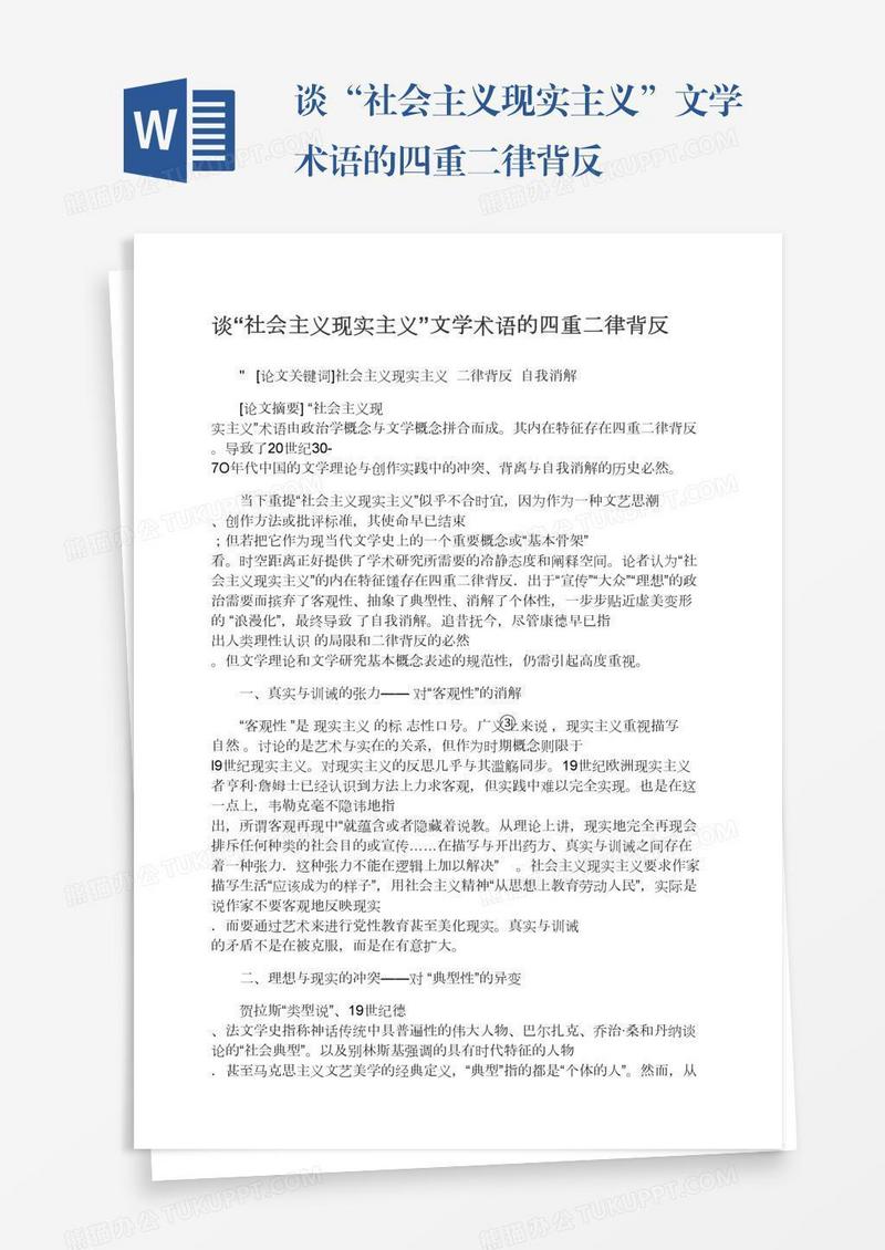 本作品为谈“社会主义现实主义”文学术语的四重二律背反, 编号:w94gqoyoj9, 格式为 docx, 大小1 MB, 本作品下载后,先解压,解压之后用推荐软件 Word(2010) 打开, 然后进行编辑功能。