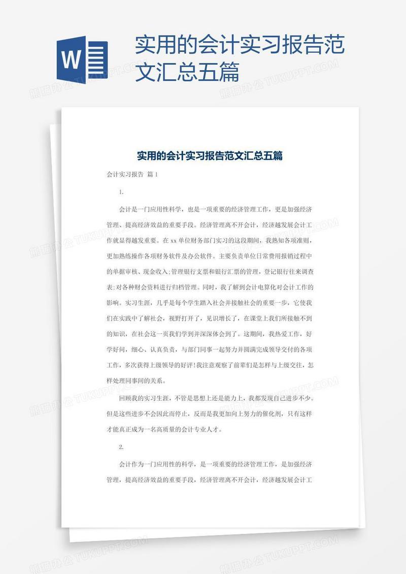 本作品为实用的会计实习报告范文汇总五篇, 编号:w9jv05ddr9, 格式为 docx, 大小1 MB, 本作品下载后,先解压,解压之后用推荐软件 Word(2010) 打开, 然后进行编辑功能。