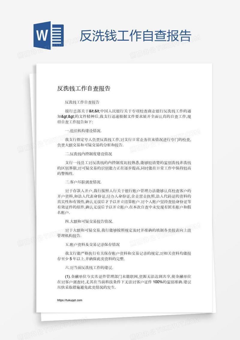 本作品为反洗钱工作自查报告, 编号:w9jv0ddl49, 格式为 docx, 大小1 MB, 本作品下载后,先解压,解压之后用推荐软件 Word(2010) 打开, 然后进行编辑功能。