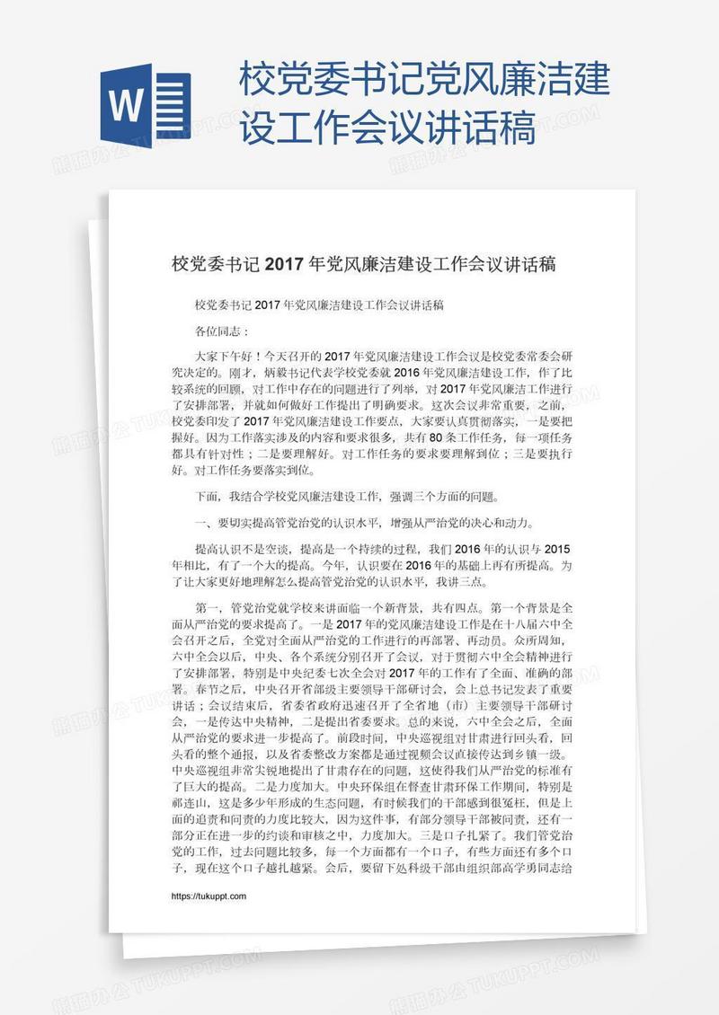本作品为校党委书记党风廉洁建设工作会议讲话稿, 编号:w9jv0g63q9, 格式为 docx, 大小1 MB, 本作品下载后,先解压,解压之后用推荐软件 Word(2010) 打开, 然后进行编辑功能。