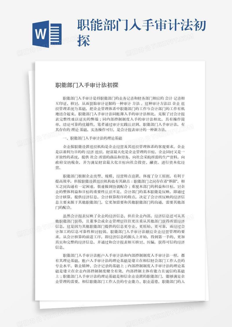 本作品为职能部门入手审计法初探, 编号:w9jv0jq349, 格式为 docx, 大小1 MB, 本作品下载后,先解压,解压之后用推荐软件 Word(2010) 打开, 然后进行编辑功能。