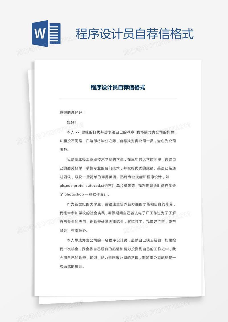 本作品为程序设计员自荐信格式, 编号:w9jv0kvpj9, 格式为 docx, 大小1 MB, 本作品下载后,先解压,解压之后用推荐软件 Word(2010) 打开, 然后进行编辑功能。