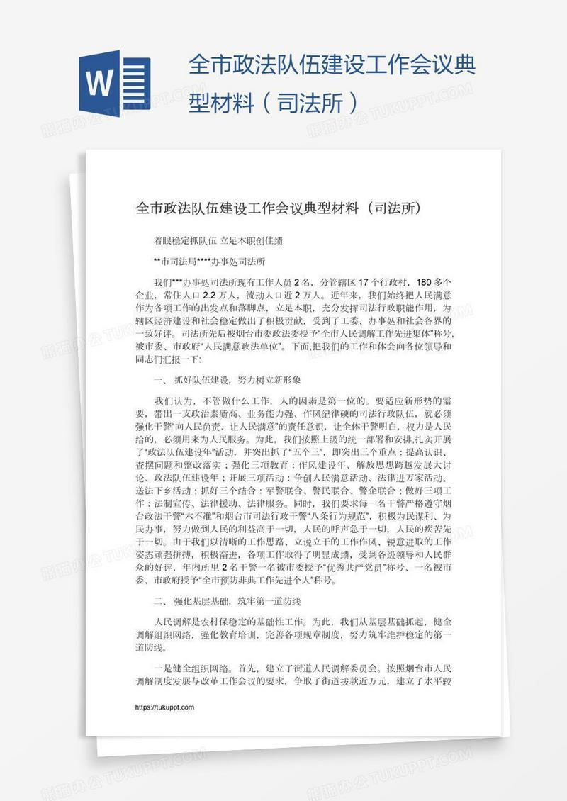 本作品为全市政法队伍建设工作会议典型材料(司法所), 编号:w9jv0qe0j9, 格式为 docx, 大小1 MB, 本作品下载后,先解压,解压之后用推荐软件 Word(2010) 打开, 然后进行编辑功能。