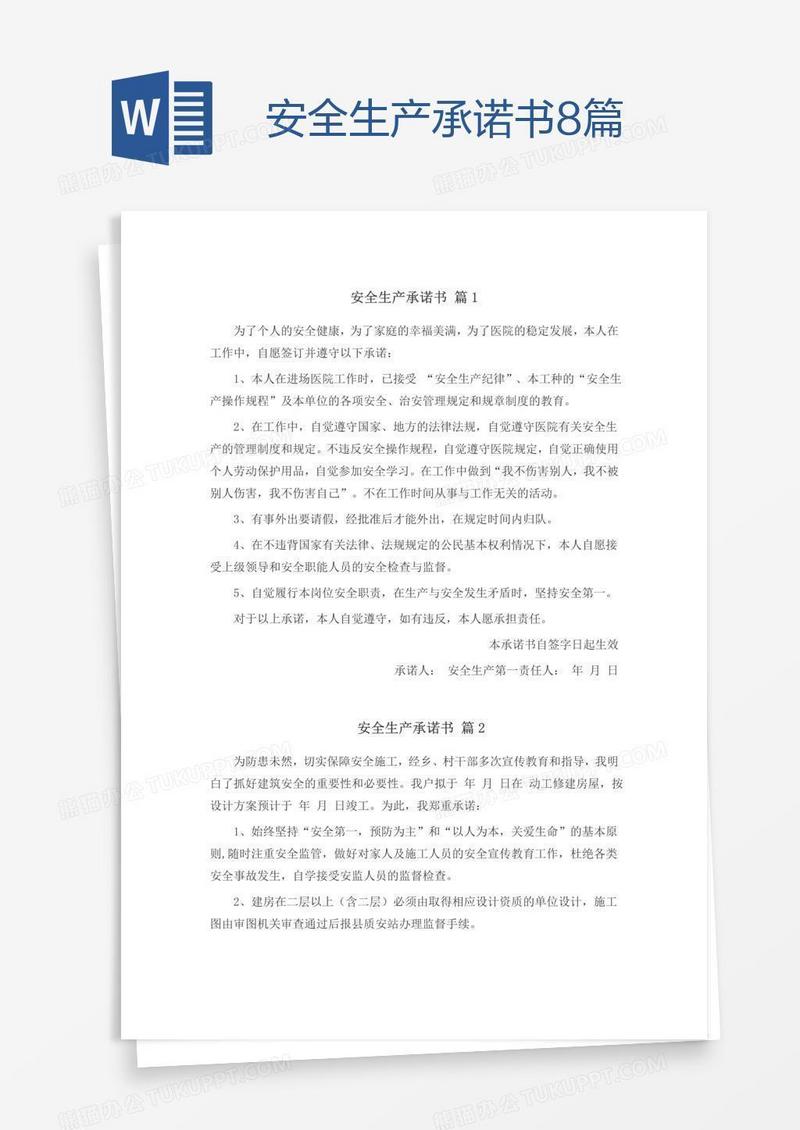 本作品为安全生产承诺书8篇, 编号:w9jve43p09, 格式为 doc, 大小1 MB, 本作品下载后,先解压,解压之后用推荐软件 Word(2010) 打开, 然后进行编辑功能。