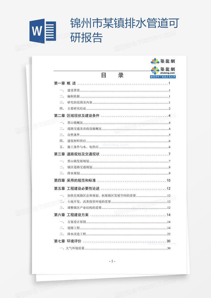 本作品为锦州市某镇排水管道可研报告, 编号:w9jve4rnj9, 格式为 doc, 大小1 MB, 本作品下载后,先解压,解压之后用推荐软件 Word(2010) 打开, 然后进行编辑功能。