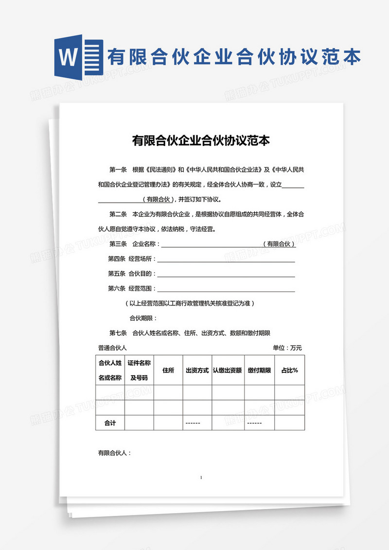 本作品为有限合伙协议范本Word模板通用, 编号:w9jve5mo49, 格式为 docx, 大小1 MB, 本作品下载后,先解压,解压之后用推荐软件 Word(2016) 打开, 然后进行编辑功能。