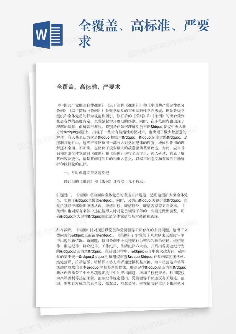 本作品为全覆盖、高标准、严要求, 编号:w9jvl03b09, 格式为 docx, 大小1 MB, 本作品下载后,先解压,解压之后用推荐软件 Word(2010) 打开, 然后进行编辑功能。