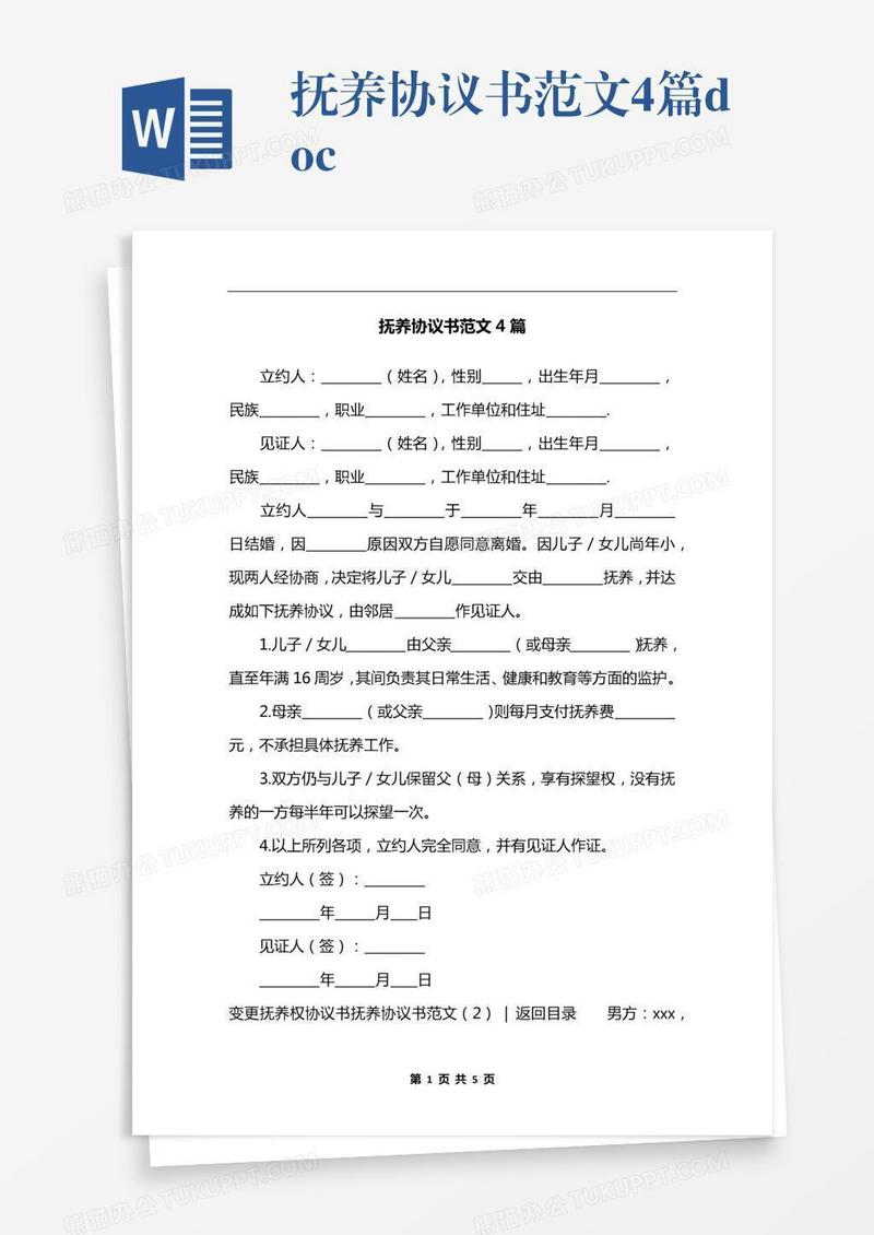 本作品为抚养协议书范文4篇.docx, 编号:w9jvl7nl09, 格式为 docx, 大小1 MB, 本作品下载后,先解压,解压之后用推荐软件 Word(2010) 打开, 然后进行编辑功能。