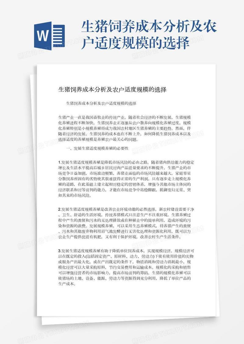 本作品为生猪饲养成本分析及农户适度规模的选择, 编号:w9jvlrv309, 格式为 docx, 大小1 MB, 本作品下载后,先解压,解压之后用推荐软件 Word(2010) 打开, 然后进行编辑功能。