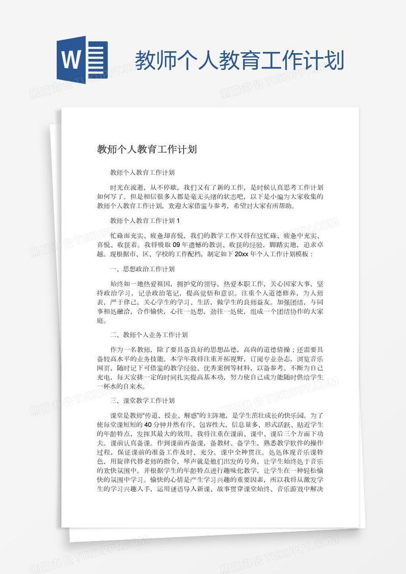本作品为教师个人教育工作计划, 编号:w9ke0k4gd9, 格式为 docx, 大小1 MB, 本作品下载后,先解压,解压之后用推荐软件 Word(2010) 打开, 然后进行编辑功能。