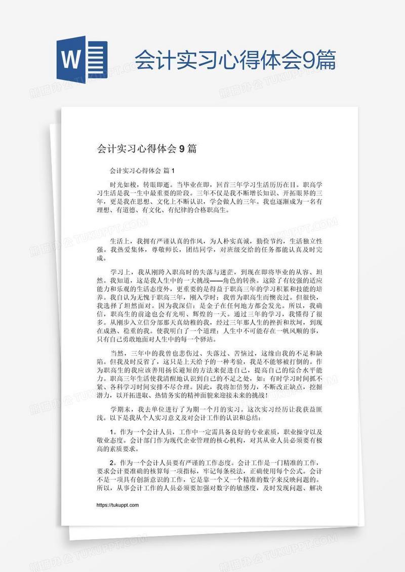 本作品为会计实习心得体会9篇, 编号:w9ke0nbl49, 格式为 docx, 大小1 MB, 本作品下载后,先解压,解压之后用推荐软件 Word(2010) 打开, 然后进行编辑功能。