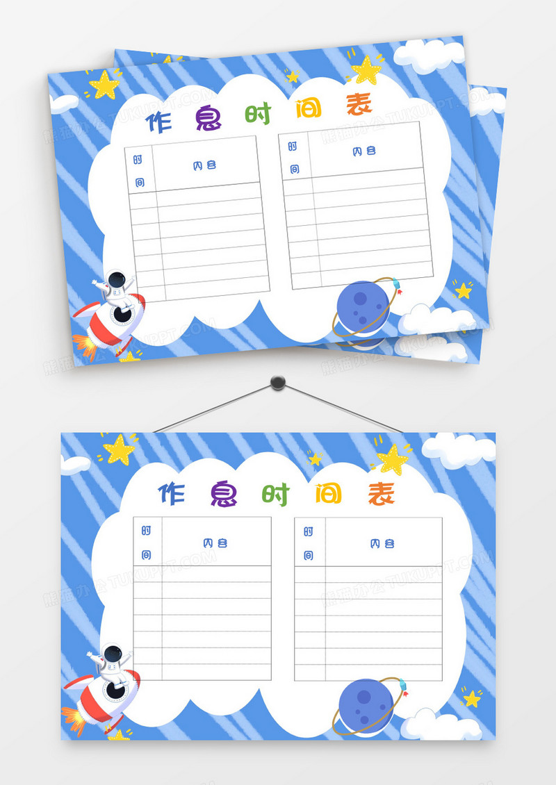 本作品为蓝色宇宙星球作息时间表, 编号:w9ke0o03b9, 格式为 docx, 大小2 MB, 本作品下载后,先解压,解压之后用推荐软件 Word(2019) 打开, 然后进行编辑功能。