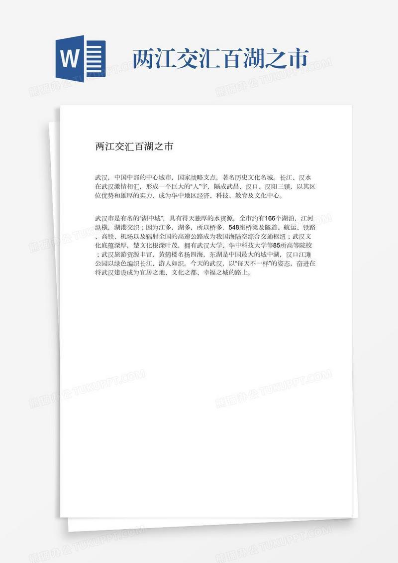 本作品为两江交汇百湖之市, 编号:w9ke33wqd9, 格式为 docx, 大小1 MB, 本作品下载后,先解压,解压之后用推荐软件 Word(2010) 打开, 然后进行编辑功能。