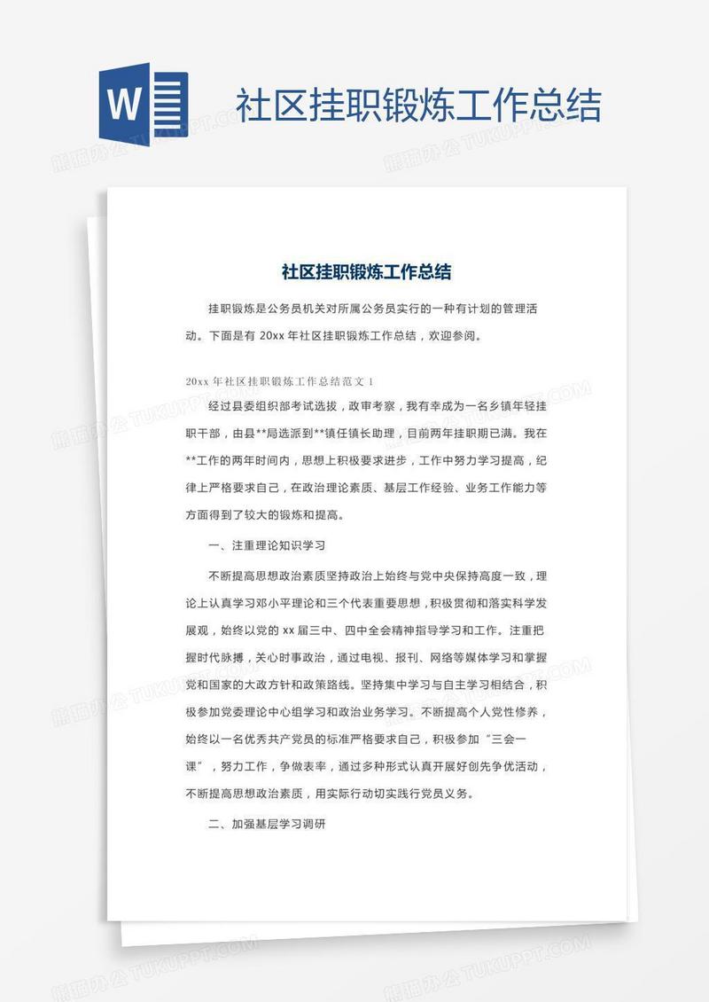 社区挂职锻炼工作总结优秀范文