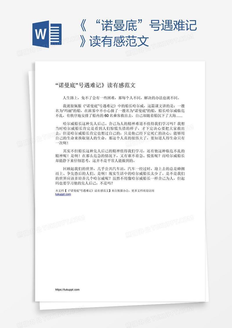 本作品为《“诺曼底”号遇难记》读有感范文, 编号:w9keq26kb9, 格式为 docx, 大小1 MB, 本作品下载后,先解压,解压之后用推荐软件 Word(2010) 打开, 然后进行编辑功能。
