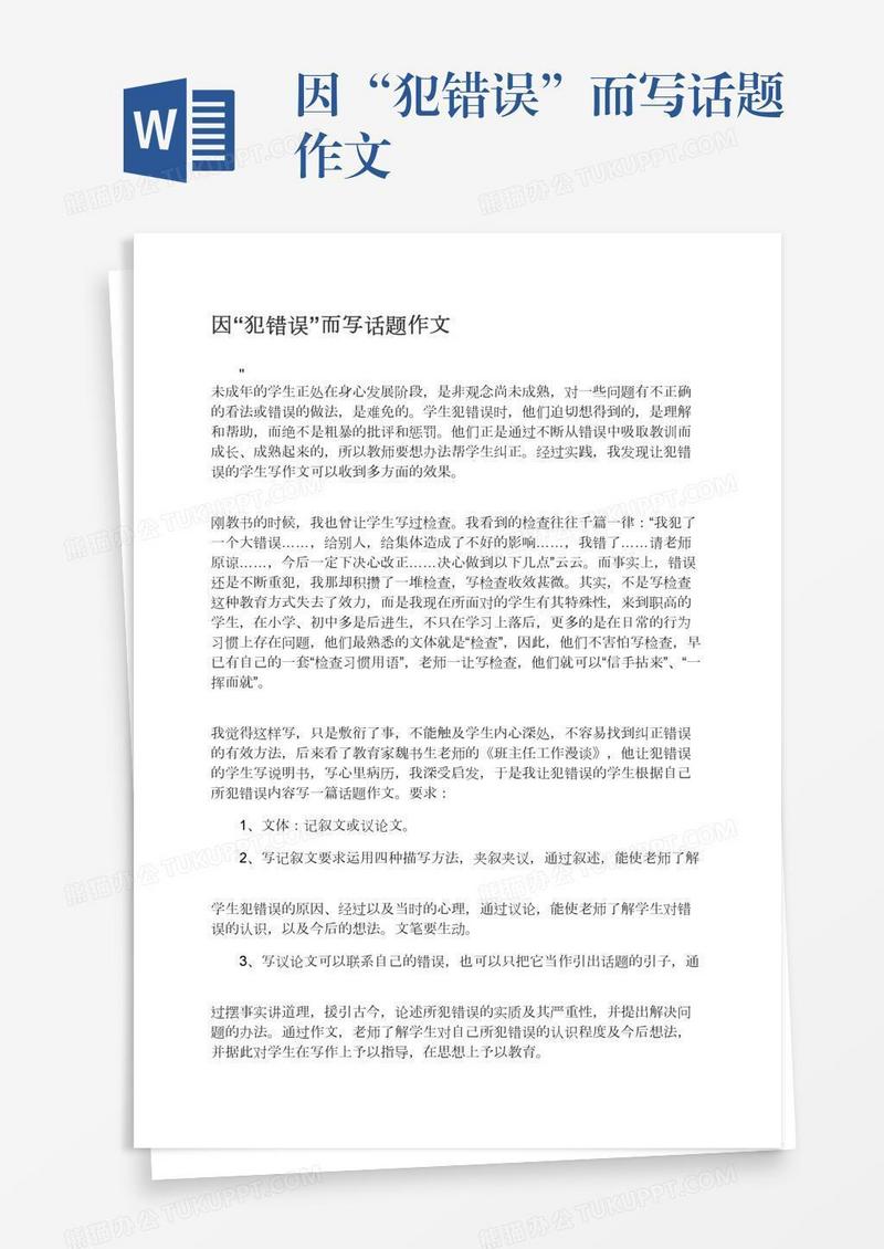 本作品为因“犯错误”而写话题作文, 编号:w9keq43j49, 格式为 docx, 大小1 MB, 本作品下载后,先解压,解压之后用推荐软件 Word(2010) 打开, 然后进行编辑功能。