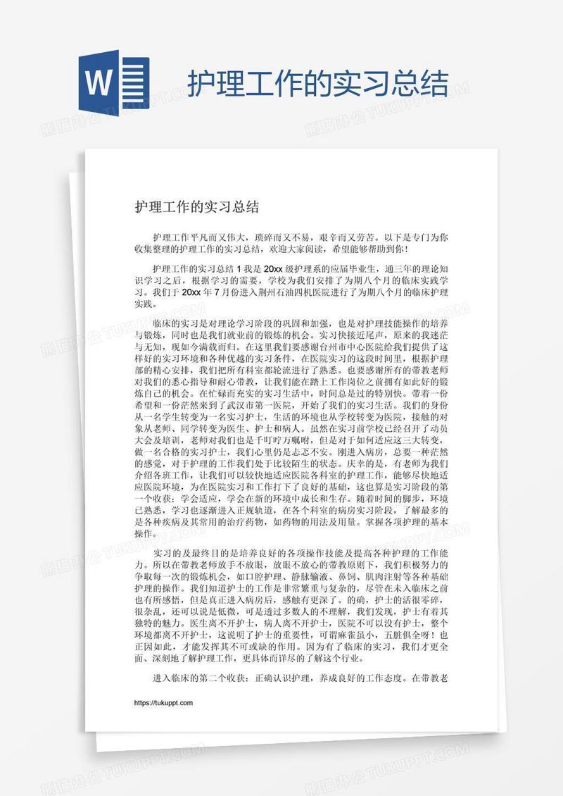 本作品为护理工作的实习总结, 编号:w9keq822y9, 格式为 docx, 大小1 MB, 本作品下载后,先解压,解压之后用推荐软件 Word(2010) 打开, 然后进行编辑功能。