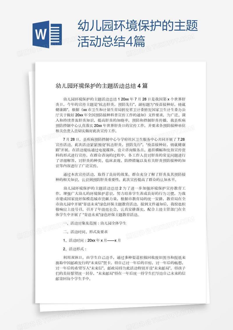 本作品为幼儿园环境保护的主题活动总结4篇, 编号:w9keq8j2b9, 格式为 docx, 大小1 MB, 本作品下载后,先解压,解压之后用推荐软件 Word(2010) 打开, 然后进行编辑功能。