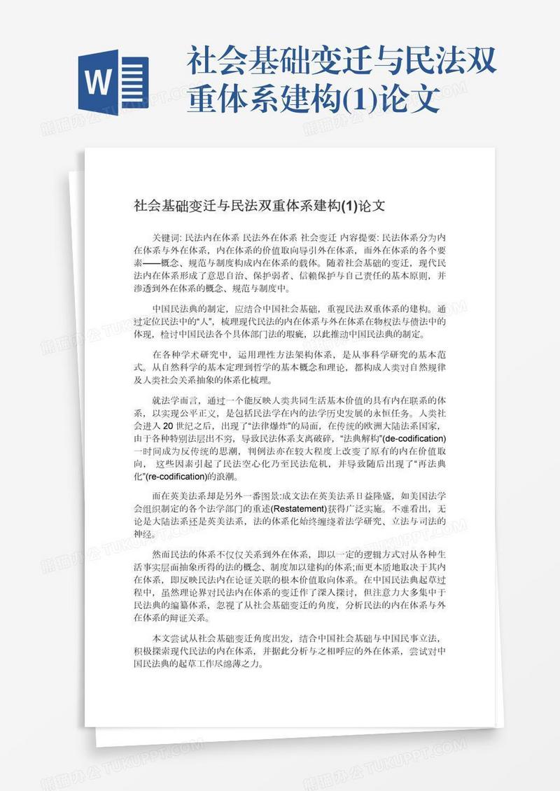 本作品为社会基础变迁与民法双重体系建构(1)论文, 编号:w9keqkred9, 格式为 docx, 大小1 MB, 本作品下载后,先解压,解压之后用推荐软件 Word(2010) 打开, 然后进行编辑功能。