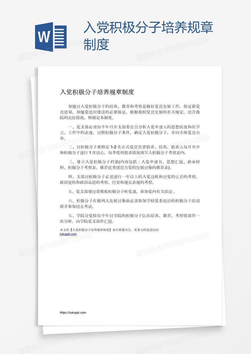 本作品为入党积极分子培养规章制度, 编号:w9keqmpl49, 格式为 docx, 大小1 MB, 本作品下载后,先解压,解压之后用推荐软件 Word(2010) 打开, 然后进行编辑功能。