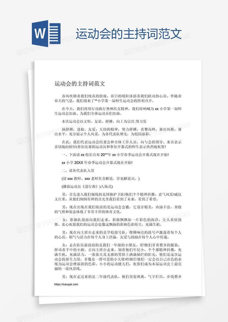 本作品为运动会的主持词范文, 编号:w9keqrjl49, 格式为 docx, 大小1 MB, 本作品下载后,先解压,解压之后用推荐软件 Word(2010) 打开, 然后进行编辑功能。