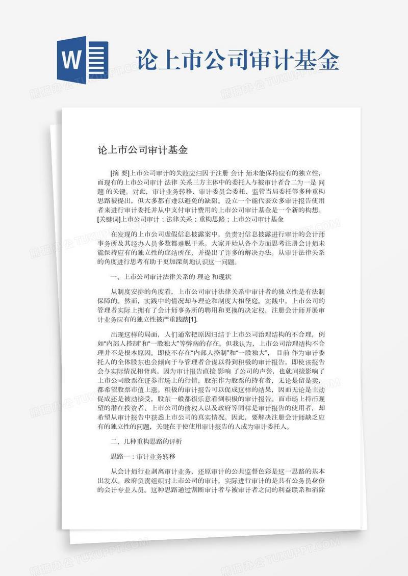 本作品为论上市公司审计基金, 编号:w9keqwv5y9, 格式为 docx, 大小1 MB, 本作品下载后,先解压,解压之后用推荐软件 Word(2010) 打开, 然后进行编辑功能。