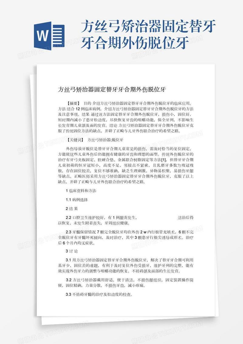 本作品为方丝弓矫治器固定替牙牙合期外伤脱位牙, 编号:wavqd082w9, 格式为 docx, 大小1 MB, 本作品下载后,先解压,解压之后用推荐软件 Word(2010) 打开, 然后进行编辑功能。