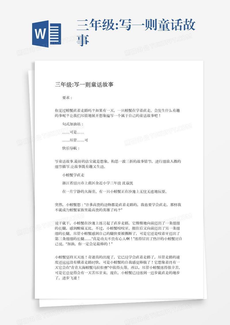 本作品为三年级:写一则童话故事, 编号:wavqd3yor9, 格式为 docx, 大小1 MB, 本作品下载后,先解压,解压之后用推荐软件 Word(2010) 打开, 然后进行编辑功能。