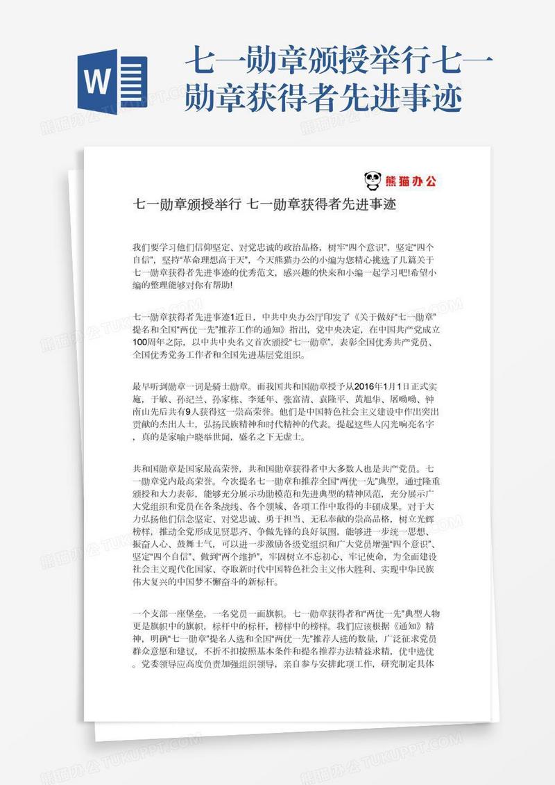 本作品为七一勋章颁授举行七一勋章获得者先进事迹, 编号:wavqd434w9, 格式为 docx, 大小1 MB, 本作品下载后,先解压,解压之后用推荐软件 Word(2010) 打开, 然后进行编辑功能。
