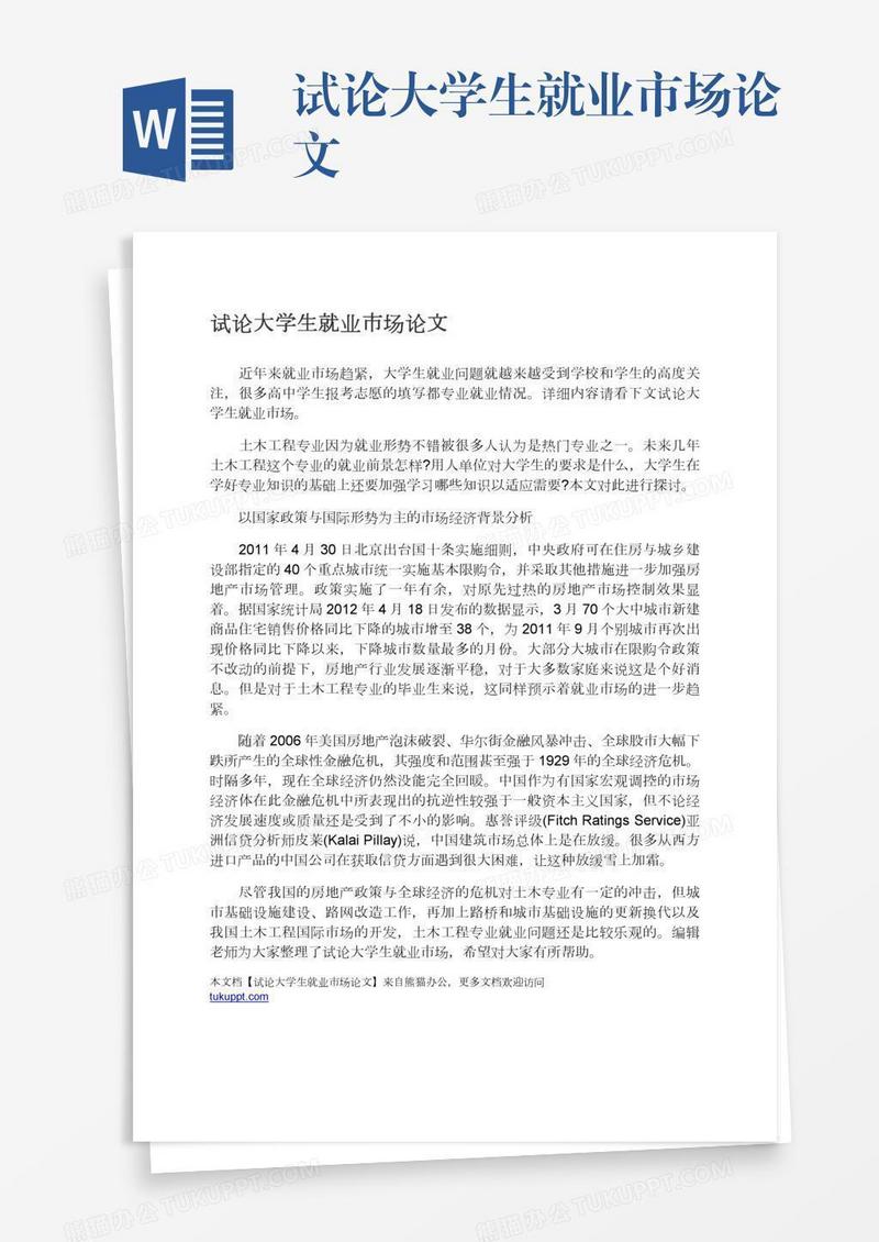 本作品为试论大学生就业市场论文, 编号:wavqd47rw9, 格式为 docx, 大小1 MB, 本作品下载后,先解压,解压之后用推荐软件 Word(2010) 打开, 然后进行编辑功能。